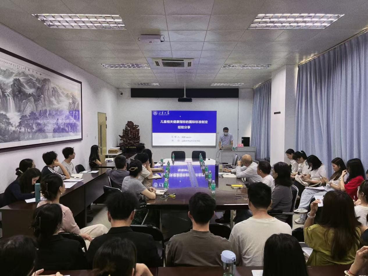 会上,郭红辉副院长致辞欢迎,对席波教授的到来表示热烈欢迎,并指出在建院20周年之际举办系列讲座“卓越大讲坛”的重要意义。讲座伊始,席波教授结合自身近10余年的研究成果,系统介绍了儿童健康指标国际标准的制定过程。他详细阐述了制定儿童健康指标国际标准的心路历程,从如何构思、如何与国际领域专家深入交流、共享数据,最终推动该标准成功制定,填补了领域空白。此外,席教授还分享了标准制定后的延伸应用,强调科学研究不应止步于论文发表,而应向实际应用转化。席教授还特别指出,标准制定的成功并非一人之功——专业统计团队夯实数据基础,国际合作伙伴精研论文表达,这种“数据+表达”的双重协作,是国际学术话语权构建的关键。此外,席波教授还向在场的青年教师及研究生分享,做学问要先向权威靠近,然后质疑权威,最后能够挑战权威。这一分享令在场师生深刻认识到,高水平科研成果的产出既需要个人深耕,更需要开放合作与批判思维。